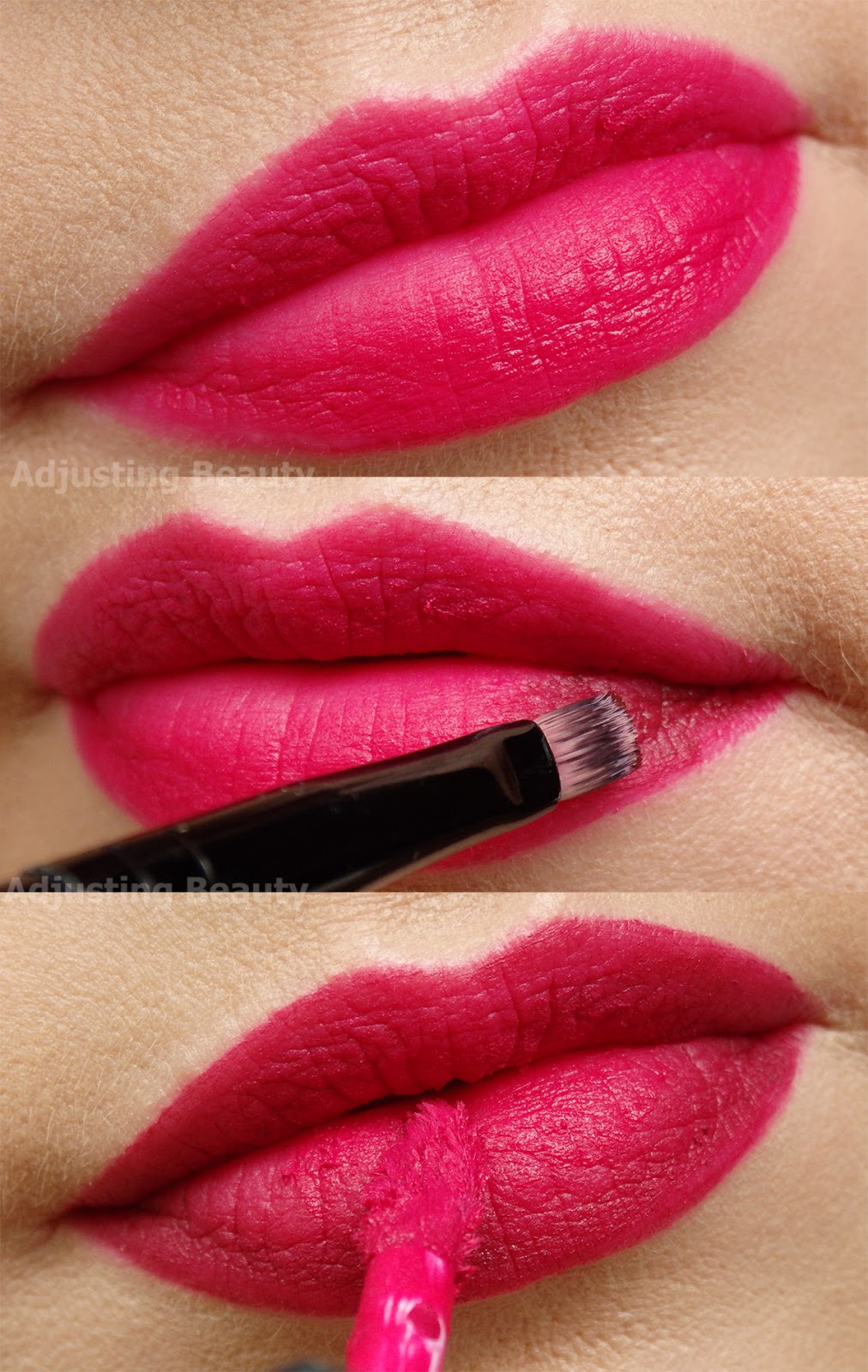 Sama imam manjše ustnice, zato večkrat "goljufam" z rdečili. Namesto na dejanski rob ustnic, jih nanašam malo čez rob. Če se zmotiš in ti kakšna linija deluje bolj zobčasto kot ravno, jo lahko z lahkoto popraviš z majhnim ravno odrezanim čopičem, ki ga namočiš v korektor. S čopičem greš s korektorjem okrog zunanje linije. S tem jo obrišeš, kar pomeni, da poravnaš samo linijo prav tako pa dodaš kontrast barvitemu rdečilu za ustnice in s tem dobiš res izstopajoče perfektno obarvane ustnice.