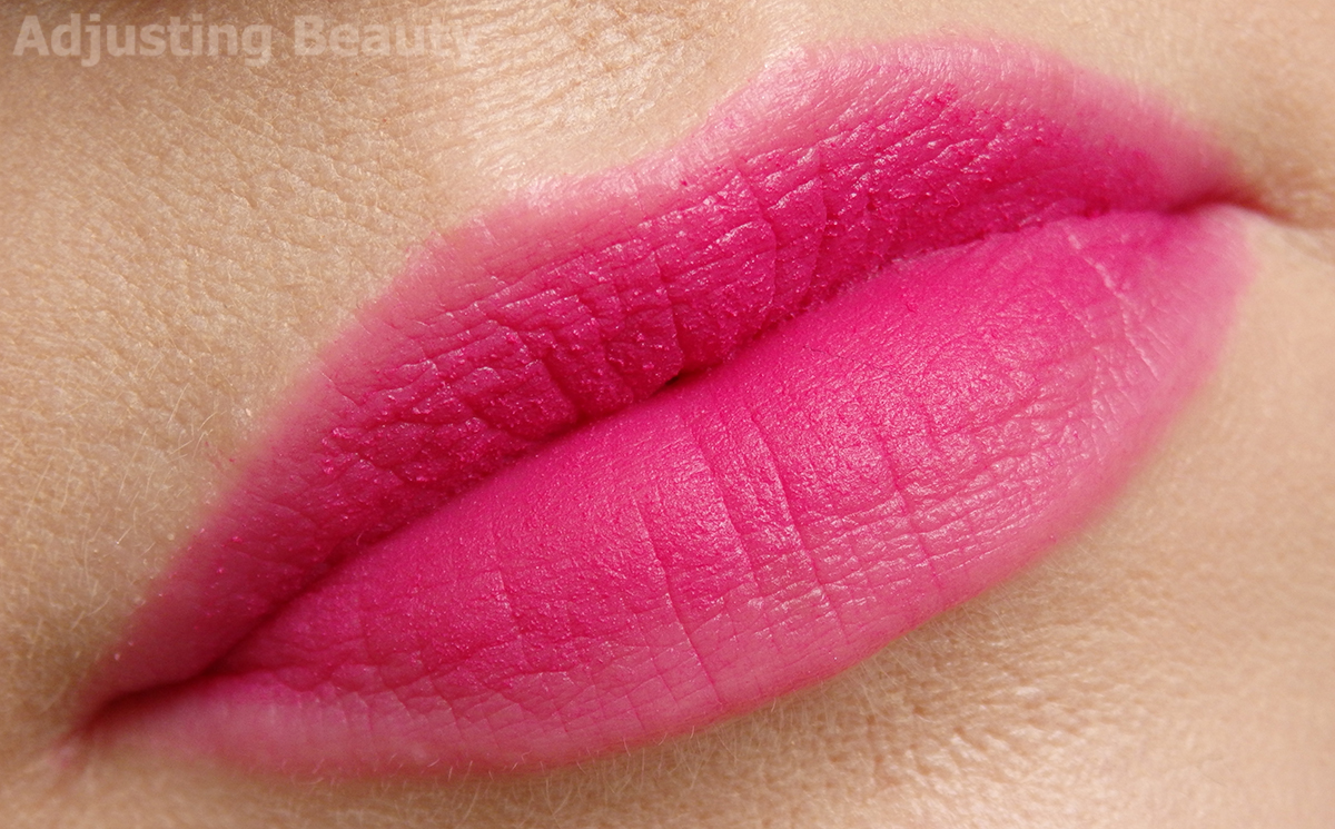 Ombre ustnice ustvarimo z dvema različnima odtenkoma rdečila za ustnice. Najprej sem uporabila Mark mat tekoče rdečilo v odtenku Flushed in ga nanesla preko celotnih ustnic. Nato sem vzela temnejši odtenek Passion It in ga s čopičem za ustnice nanesla najprej v zunanje kotičke ustnic in ga počasi zabrisovala proti sredini. Enako sem storila okrog zunanjih robov ustnic, vendar sem tam nanesla temnejši odtenek še bolj na tanko in ga lepo zabrisala v prvi svetlejši odtenek. Nato sem znova nanesla svetlejši odtenek v notranje robove ustnic in ga potapkala s prsti, da sta se oba odtenka lepo prelila med sabo. Notranji obroč ustnic mora izgledati svetlejši, med tem ko morajo biti robovi temnejši. Prehod med obema pa dobro zabrisan. S tem nanosom ustnicam dodamo volumen, da te izgledajo polnejše.